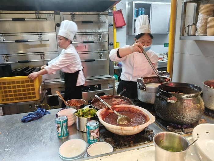 记者看到,“小吃王国”的一楼,生意特别红火,大厅里座无虚席,食客多数是外地游客,服务员忙得脚不沾地,很少能在取菜窗口前停留超过半分钟。