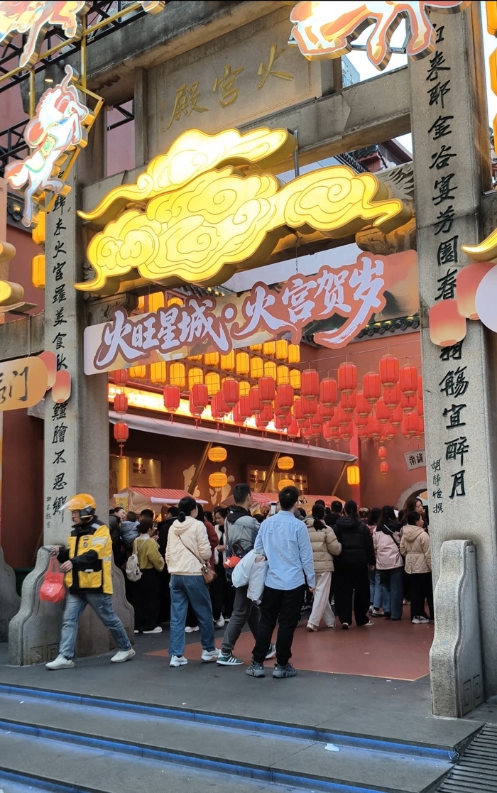 令市民和全国游客惊艳的年味背后,是很多火宫殿工作人员放弃与家人团圆的机会,坚守岗位。新黄河记者从火宫殿工作人员处获悉,作为长沙火神文化与百年美食记忆的承载者,火宫殿一直都是星城年味最浓的地标之一,今年火宫殿新春庙会以非遗为核心,精心策划了祭火仪式、灯谜互动、迎财神、火龙巡游等多项年俗活动,保证市民和游客体验到正宗的长沙年味。