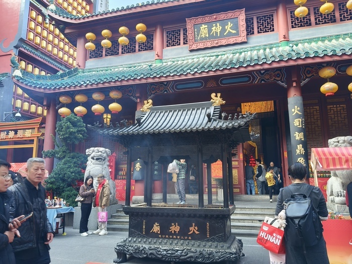 平日,在人流如织的步行街,火宫殿入口处的古老牌楼并不起眼,但一到春节,牌楼下挂满了大红灯笼,庙里庙外张灯结彩,通道两侧尽是吹糖人的小摊贩,不少孩子在这儿就走不动道了,缠着父母闹着要买个糖人。
