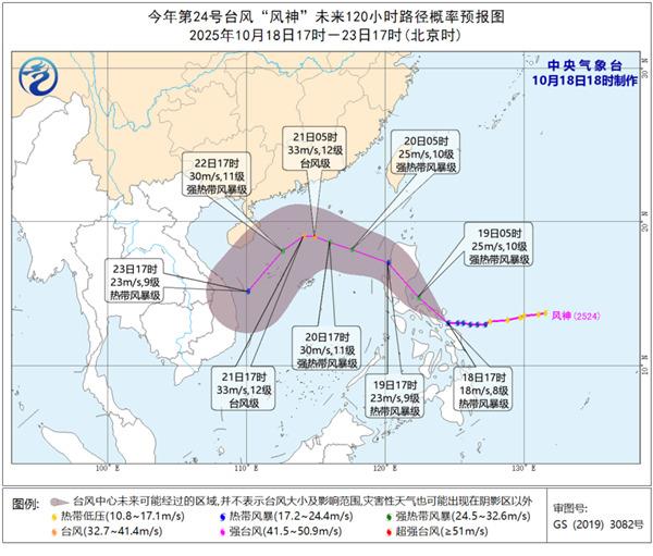 另外,今年第24号台风“风神”已于今天凌晨生成。预计“风神”明天白天将在菲律宾吕宋岛东部沿海登陆,此后穿过吕宋岛,明天下午到夜间进入南海东部海面。
