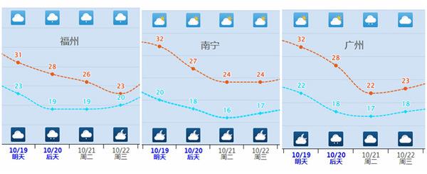 华南的降温则从明天开始,到下周三前后,福建、广东、广西、海南最低气温将降至20℃以下。