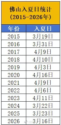 值得注意的是,佛山已经连续3年在3月入夏。2025年佛山入夏时间为3月23日,2026年较2025年提前了7天入夏,也是2015年以来入夏最早的一次。