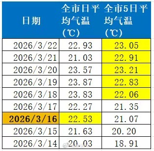据@佛山天气 公布的数据,3月16日至20日,佛山市连续5天平均气温在22℃以上,这意味着3月16日佛山市已达到入夏标准。