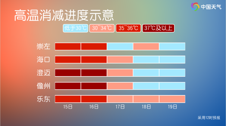 这波高温还将持续多久?林楠表示,海南、广西西部等地的高温天气将持续至16日,其中海口明后天仍有持续性高温,将继续刷新当地4月最长连续高温纪录。预计17日随着副热带高压南撤,华南多地将摆脱下沉气流的控制,降雨增多,高温将得到缓解。大城市中,海口、儋州、澄迈的高温将在17日集体中断,并将在18日降至30℃以下,炎热程度会减轻不少。