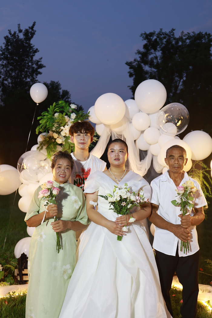 这场仪式,是仓也和团队为胡心瑶准备的惊喜。旅行途中,仓也一边带着胡心瑶和父母游玩长沙,一边让团队小伙伴偷偷布置现场、向陌生路人发放邀请函,一切都在秘密中进行,直到胡心瑶被拉进化妆间换上洁白的婚纱,推到现场的那一刻,所有的美好与温暖如约而至。现场来了许多素不相识的陌生人,大家为她送上玫瑰、送上祝福,簇拥着这个历经磨难的女孩,让她迎来了人生中最耀眼的高光时刻。“那一天很梦幻,比我想象中要好得多。”这场突如其来的惊喜,成了胡心瑶灰暗人生里一抹温暖的亮色。