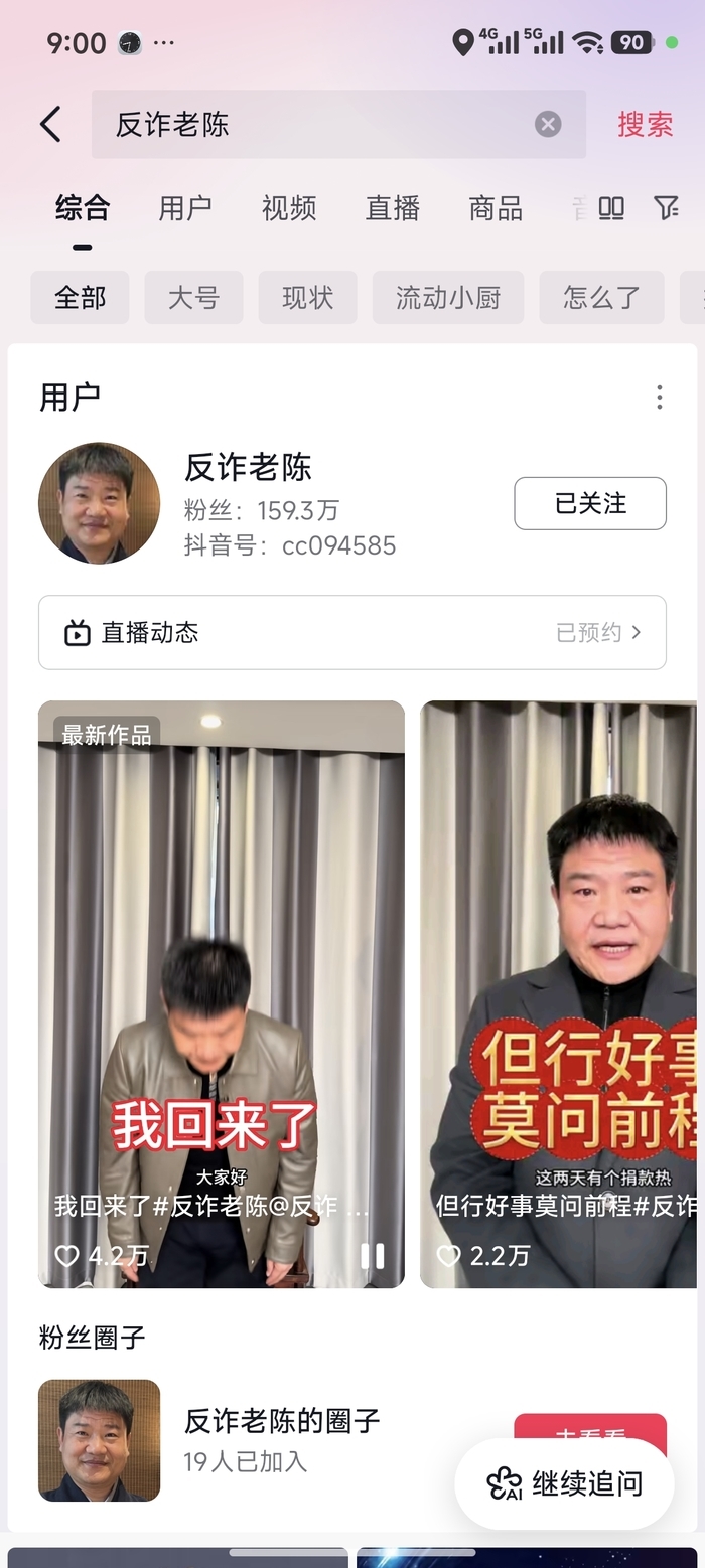 据了解,2月27日,抖音平台通过“抖音黑板报”发布处置公告,明确对“反诈老陈”相关账号作出从严处置,其主账号当时已无法搜索到。