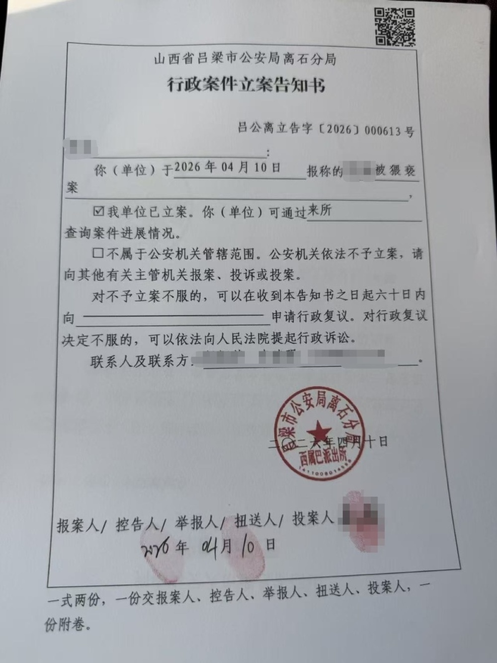 4月12日,记者就此事多次致电并短信联络吕梁中院相关负责人,截至发稿暂未获回应。同日,记者了解到,此事经王女士报案后,吕梁市公安局离石分局西属巴派出所已于4月10日就王女士报称被猥亵一案进行行政立案。