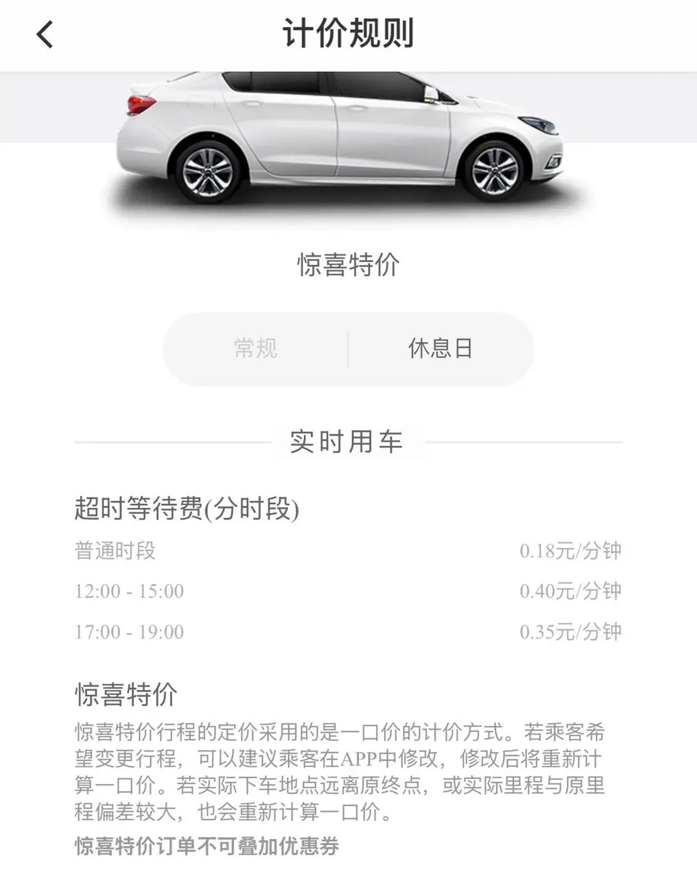 ▲滴滴平台给出的“特惠价”计费标准