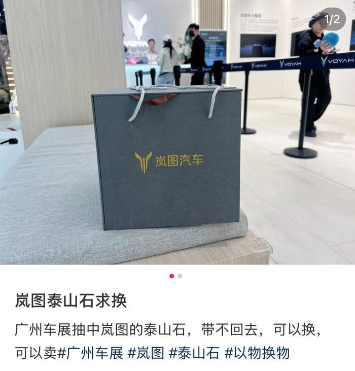 奖品石块被网友调侃为“车展最沉甸甸的羊毛”。在小红书等平台,几乎所有中奖用户在分享时都带上了“#泰山石”“#岚图泰山”等标签。