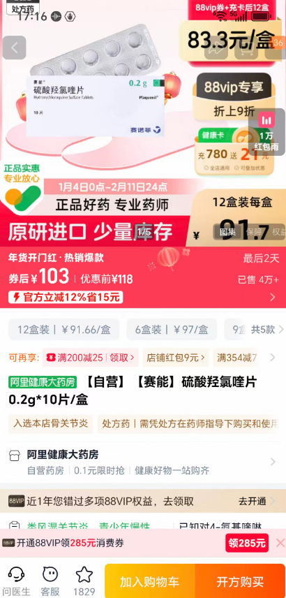 “赛能”成分为“硫酸羟氯喹片”,由法国药企“赛诺菲”生产。该药在风湿免疫科广泛使用,主要用于自身免疫性疾病的治疗,如系统性红斑狼疮(SLE)、类风湿性关节炎(RA)、青少年慢性关节炎等。