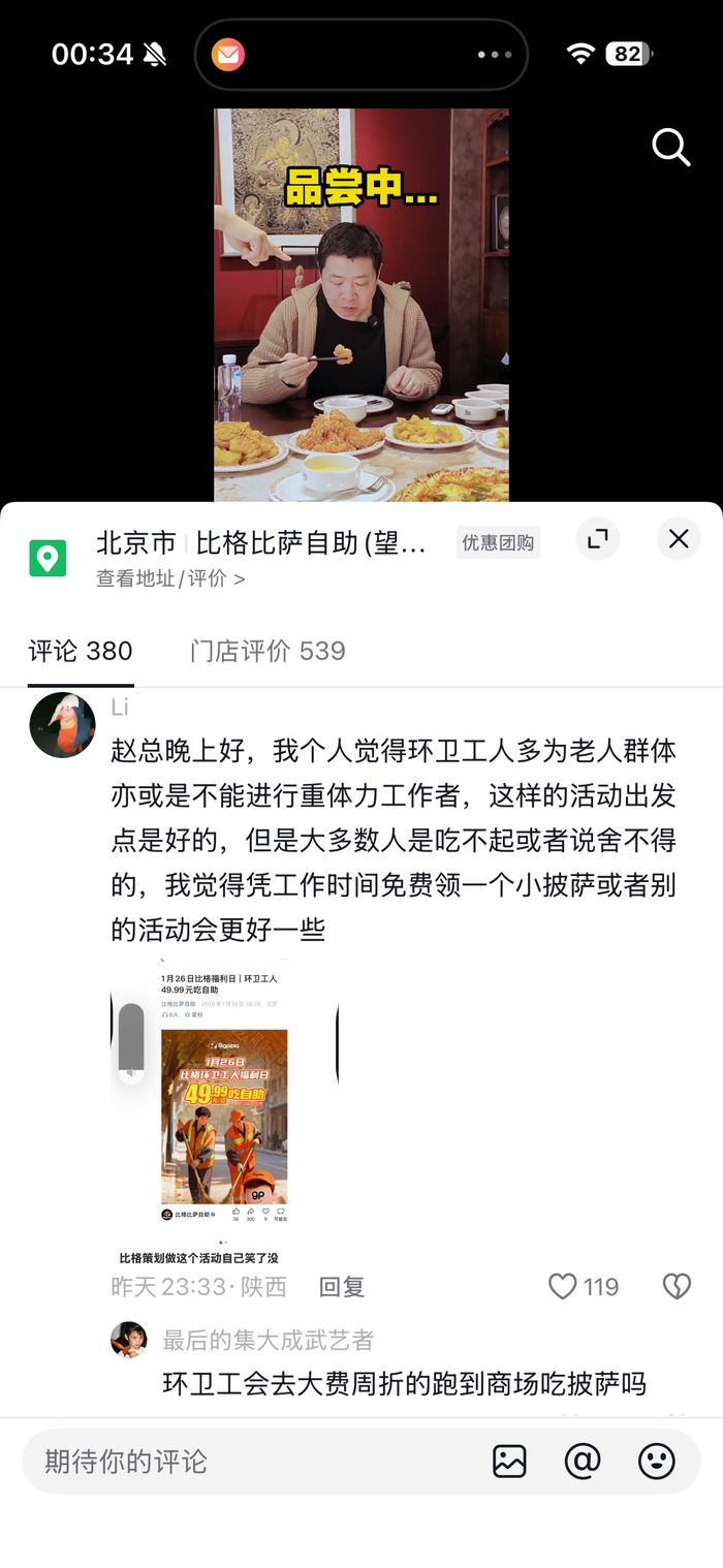 还有消费者通过比对发现,活动定档的1月26日恰逢周一,而比格比萨常规的门店活动中,周一本身即为“65岁以上老人优惠日”,价格同样为49.99元。有观点认为,品牌方仅仅是将常规的闲时优惠换了个名目,并未针对环卫工人这一特殊群体提供实质性的额外让利。此外,还有评论认为,环卫工人多为中老年群体,或难以适应“西式自助”饮食习惯。