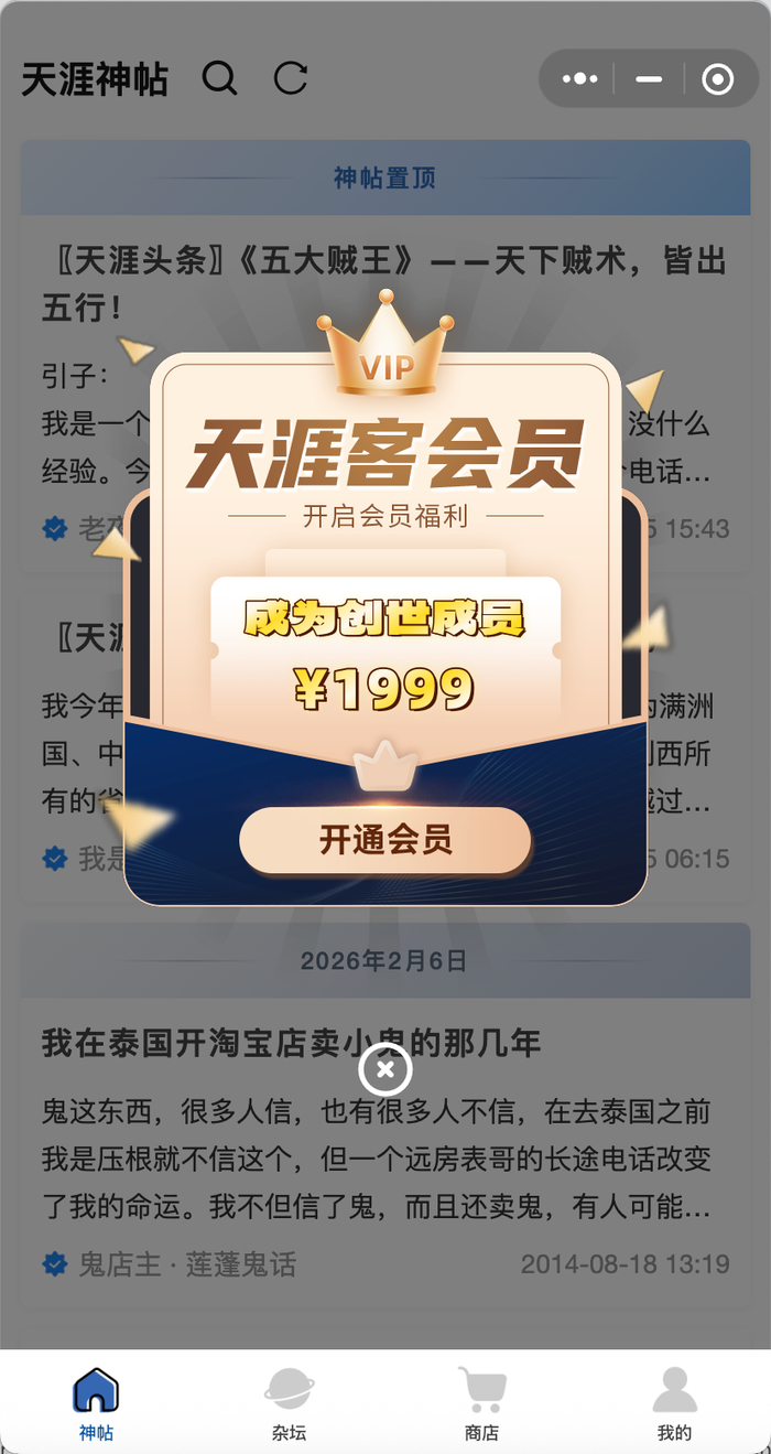 与此同时,一款名为“天涯神贴”的小程序同步上线。记者实测发现,本轮社区重启被明确绑定会员体系。平台正通过发售限量9999份“创世成员”礼包筹集启动资金,单价1999元。