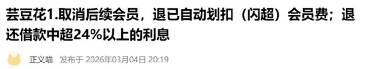 该消费者在投诉中明确要求,平台取消后续会员扣费,退还已被闪超科技划扣的会员费,并退还借款中超过24%以上的利息。
