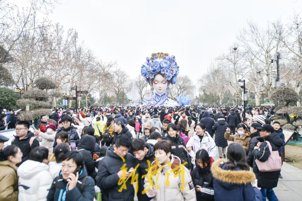 新春假期,泉城各个景区迎来出游高峰。在大明湖南岸的正谊广场,高达12米的古装少女灯组“湖畔雨荷”建成后,市民关注度和观灯热情持续攀升,在春节期间成了大明湖最火的景点。