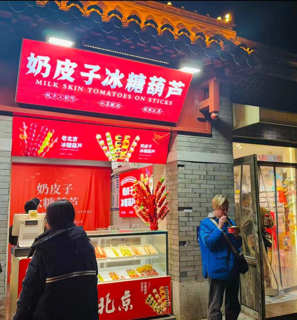华灯初上,南锣鼓巷迎来了它一天中最富魅力的时刻。巷口的牌楼悄然隐入夜色,巷内却流淌出一片璀璨的光河。在摩肩接踵的人潮中,外国面孔成为一道流动的风景:有的站在街边小心翼翼地咬开蟹黄汤包,有的走进特色门店比画着询价。