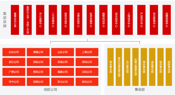 9月17日,万科官网变更了组织架构、管理团队信息。新的组织架构包括集团总部、地区公司和事业部。集团总部下设董事会办公室等11个中心;地区公司由原“5+2+2”架构(五大区域、两个总公司、两个直管公司)调整为16个地区公司,由总部直接管理;事业部则涵盖物业、物流、商业、长租公寓等八大多元化业务板块。相关核心管理人员亦同步披露。这意味着万科运行了将近20年的“集团—区域—城市”三级管理模式成为了历史。
