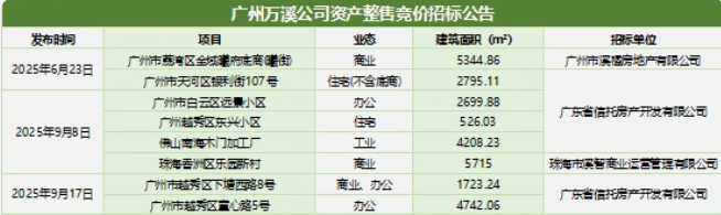 需要指出的是,广州万溪今年已累积对旗下8项资产启动整售竞价招标。此前的6月23日,广州万溪上架了广州荔湾金域曦府的底商曦街,以及天河银利街107号住宅;两个月后,再挂牌白云区乐嘉路两层办公物业、荔湾区一栋住宅、佛山南海黄岐工业物业,以及珠海香洲两层商业物业。