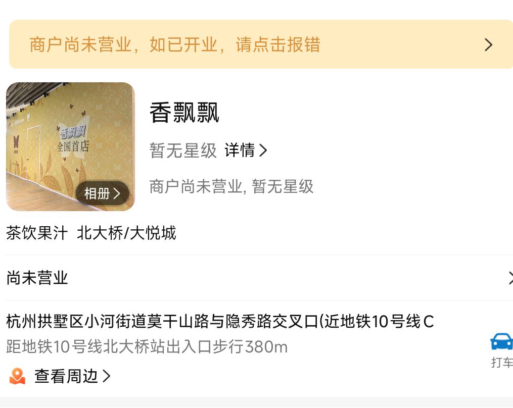 近日,有网友在社交平台透露,香飘飘全国首店已在杭州大悦城负一层正式围挡。目前该门店已登陆大众点评,显示尚未营业,品类定位为茶饮果汁。