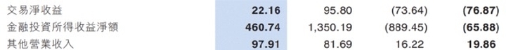 另一方面,该行交易净收益以及金融投资所得收益净额大幅下降,分别同比减少了0.73亿元、8.89亿元,分别同比下滑了76.87%、65.88%。财报表示,这主要是市场利率及资产价值波动共同影响所致。