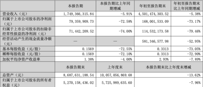 单看第三季度,其营收为17.49亿元,同比下降5.91%;净利润7936.0万元,同比下降72.58%。这表明,困扰公司的发展困境在第三季度并未出现任何实质性好转。
