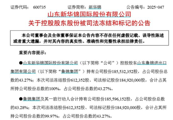 这些冻结多与新华锦、鲁锦集团的金融借款合同以及财产保全有关,其中3笔冻结至2027年、4笔冻结至2028年,既有私募基金,也有工程、装饰设计的供应商。