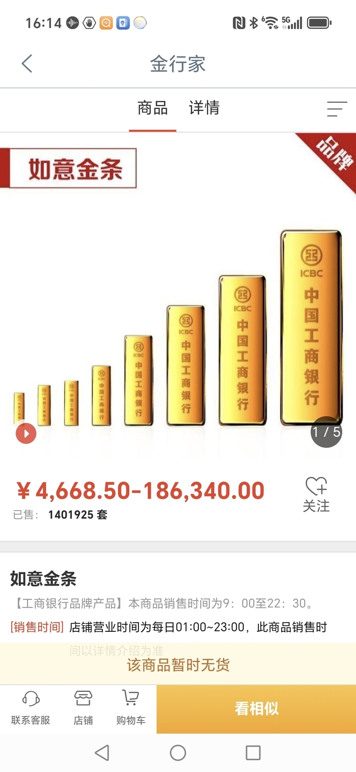 不过,本次暂停业务时间不到1天,3日晚间,工行再次公告称,现已恢复受理如意金积存业务的开户、主动积存、新增定期积存计划以及提取实物的申请。新黄河记者4日在该行APP客户端查询发现,目前如意金积存功能已恢复,但如意金条仍显示“无货”。