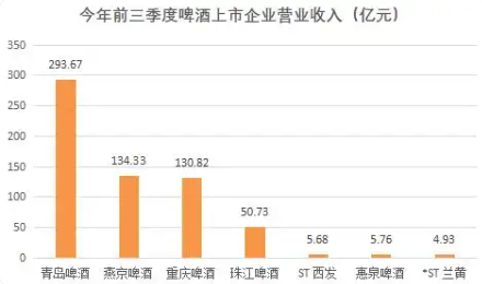 青岛啤酒前三季度销量仅增1.6%,第三季度销量微增0.3%;重庆啤酒营收同比下滑,净利润减少6.83%至12.41亿元,成为唯一盈利下滑的头部企业。