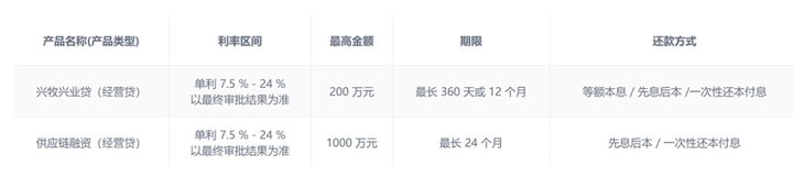 官网显示,慧新小贷主要依托新希望集团产业链,通过互联网为“三农”和小微企业提供金融服务。该公司主要产品包括经营贷“兴牧兴业贷”以及“供应链融资”。