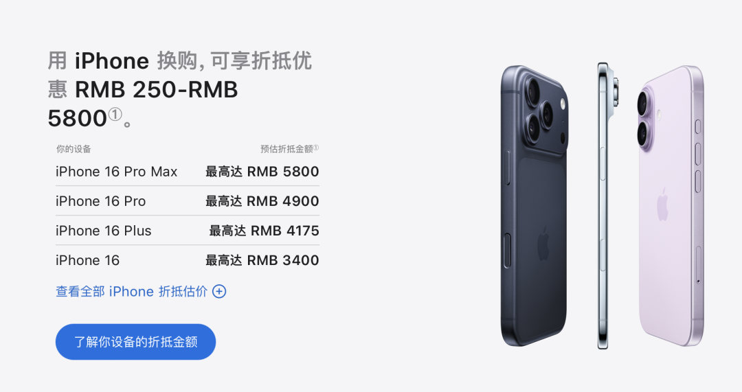 1月16日,苹果调整了iPhone、iPad、Mac等设备以旧换新折抵价,华为、小米等安卓机型也被纳入折抵范围。其中,iPhone 16 Pro Max中国区最高可抵5800元,iPhone 15 Pro Max最高可抵4300元;iPad Pro最高可抵5800元,iPad Air最高可抵3500元;MacBook Pro最高可抵6050元,Mac Pro最高可抵14000元。