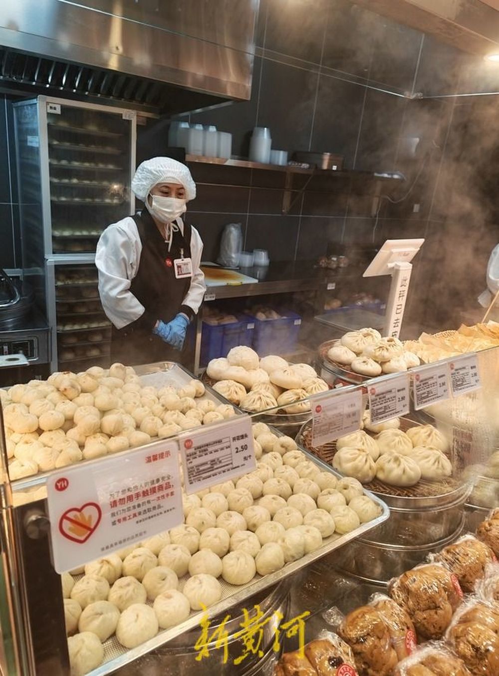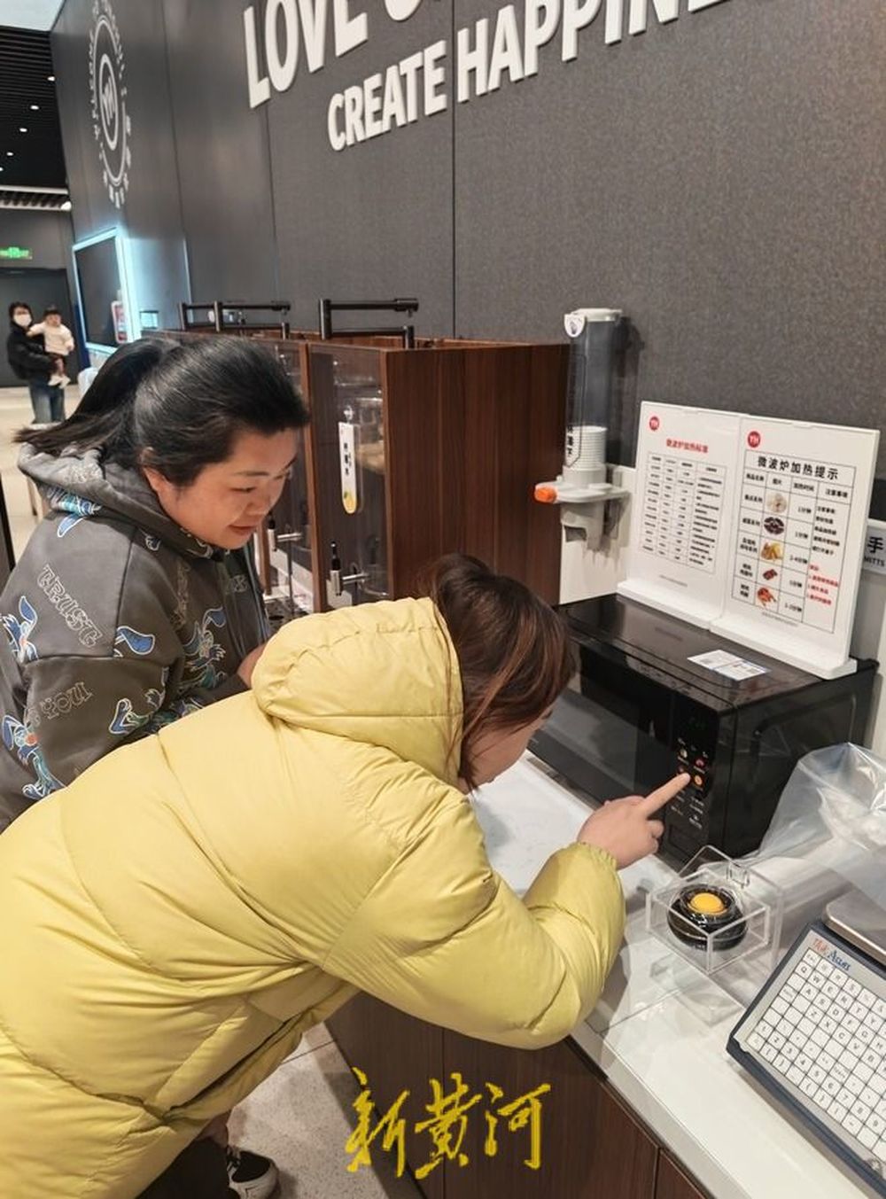 服务细节的打磨成为此次门店调改的核心策略之一。记者注意到,店内水果区、烘焙区等多位置设有试吃台,熟食档口热气腾腾,便民休息区里几位老人正悠闲地喝着免费茶饮。张先生特别提到,便民服务是此次调改的一大特色,如店内在春节期间为顾客提供免费礼品打包服务,同时还设有微波炉和温水洗手池,冷链区配备防冻手套,如果消费者购物较多较重,门店还可提供寄存服务等,这些贴心服务客观上为门店口碑加分不少。