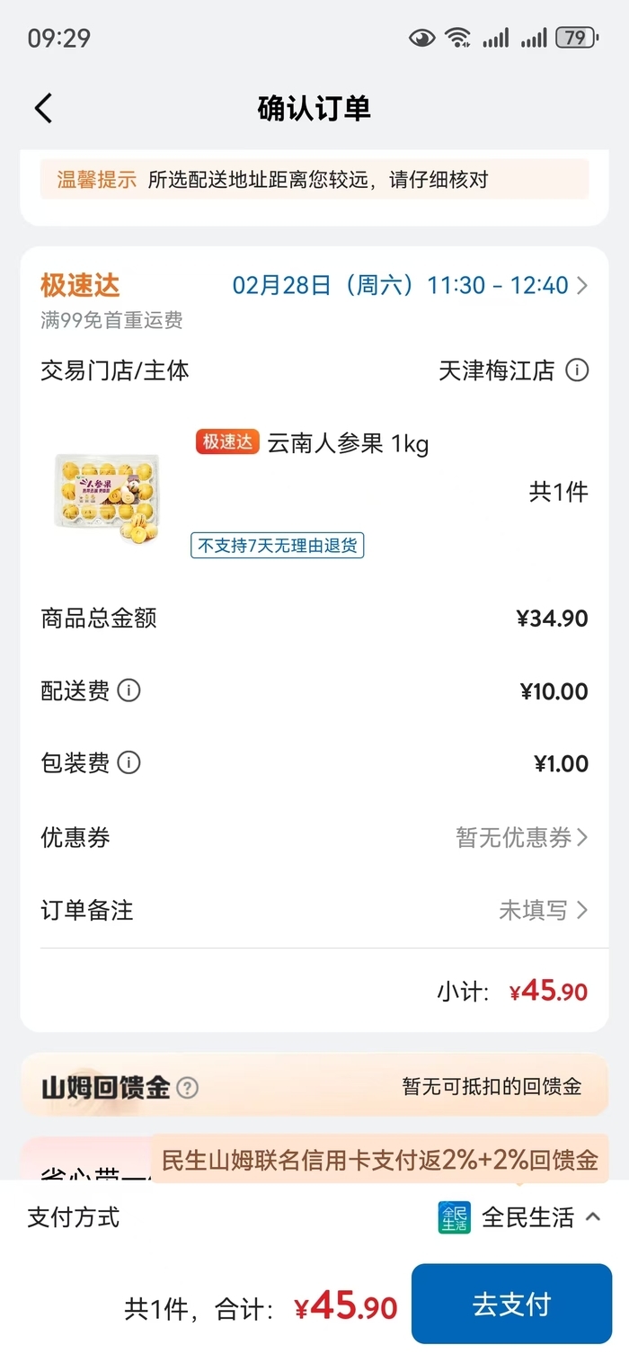 “为什么我9点下单,系统提示12点30分才能送达”“山姆App下单极速达商品后,查看订单时发现商品自动变成‘全城配’,并加收15元配送费。”2月28日,备受泉城市民期待的济南山姆超市“极速达”服务正式上线,但从当天上午的用户体验反馈来看,随处可见吐槽该超市存在运力不足,云仓缺货严重等问题。此外,线上交易门店多显示为“天津梅江店”,不少用户对潜在的退换货问题产生疑虑。