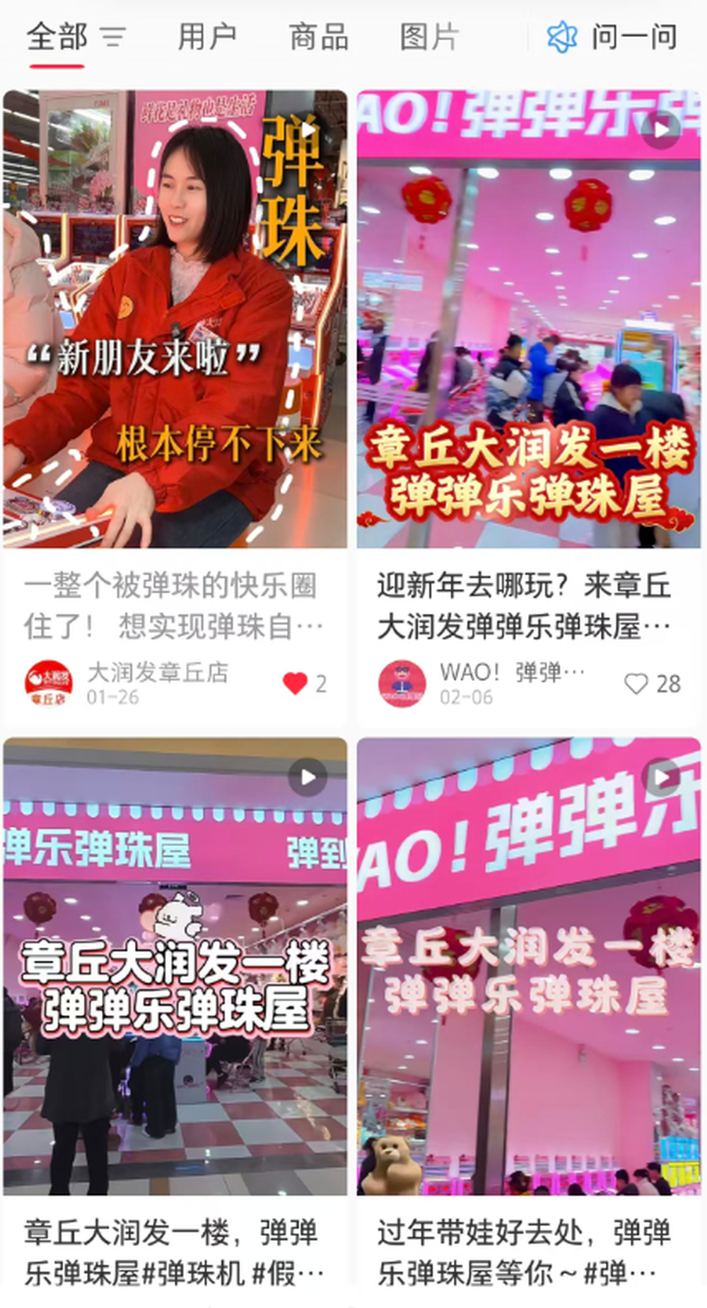 记者在小红书搜索发现,济南多家大润发超市都已开设弹珠机专区,从官方发布的视频可以看到,章丘大润发将原有卖场区域进行重新调改整合,专门打造了一个面积较大的弹珠娱乐屋,屋内引入了三四十台弹珠机,玩家中奖后还可以兑换包括毛绒玩具等在内的品类丰富的奖品,吸引了包括女性消费者等在内的众多玩家参与,节假日场面十分火爆。