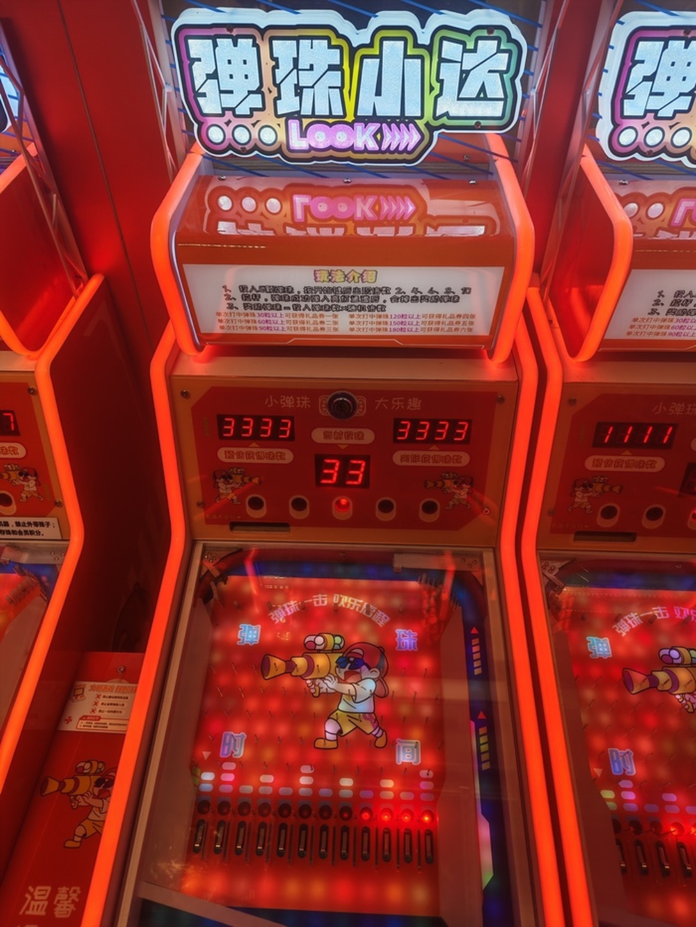 弹珠机具体如何游玩?据她介绍,玩家需先花钱购买陶瓷弹珠作为“游戏币”,投入10颗即可弹射一次大钢珠,机器会随机给出2-10倍不等的倍率。钢珠落入亮灯轨道即可赢得对应倍数的小弹珠,倍率越高,亮灯轨道数量越少。2倍倍率时亮灯轨道占比30%-40%,而10倍倍率时仅保留一条亮灯轨道,中奖难度显著提升。