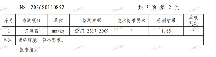 与此同时,记者获取的另一份检测报告则呈现出截然不同的数据量级。消费者于购自北京永辉超市卧龙悦购店 、生产日期为2025年12月16日的黄天鹅可生食鲜鸡蛋 ,经专业机构检测,其角黄素含量达到了1.65mg/kg 。这一数值不仅是品牌自检声明数值的4倍以上,也超过了中国农业大学副教授朱毅此前提出的1mg/kg天然本底参考线。对于同一品牌不同批次之间出现如此大的数值差异,声明未作任何说明。