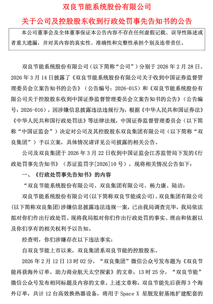 一张总计1300万元的行政处罚事先告知书,将双良节能及其控股股东推上舆论风口。3月22日晚,这起因微信公众号内容引发的信披违规案迎来了监管初步定论。
