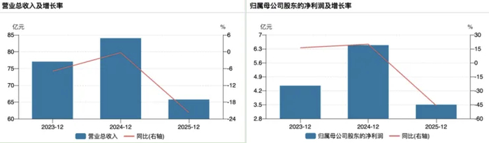近日,中成药龙头昆药集团交出了一份令市场失望的年度成绩单。财报显示,该集团2025年实现营业收入65.75亿元,同比下降21.74%;归母净利润3.50亿元,同比下降46.00%;扣非归母净利润仅1.07亿元,同比大幅下滑74.45%,核心经营指标全面承压。