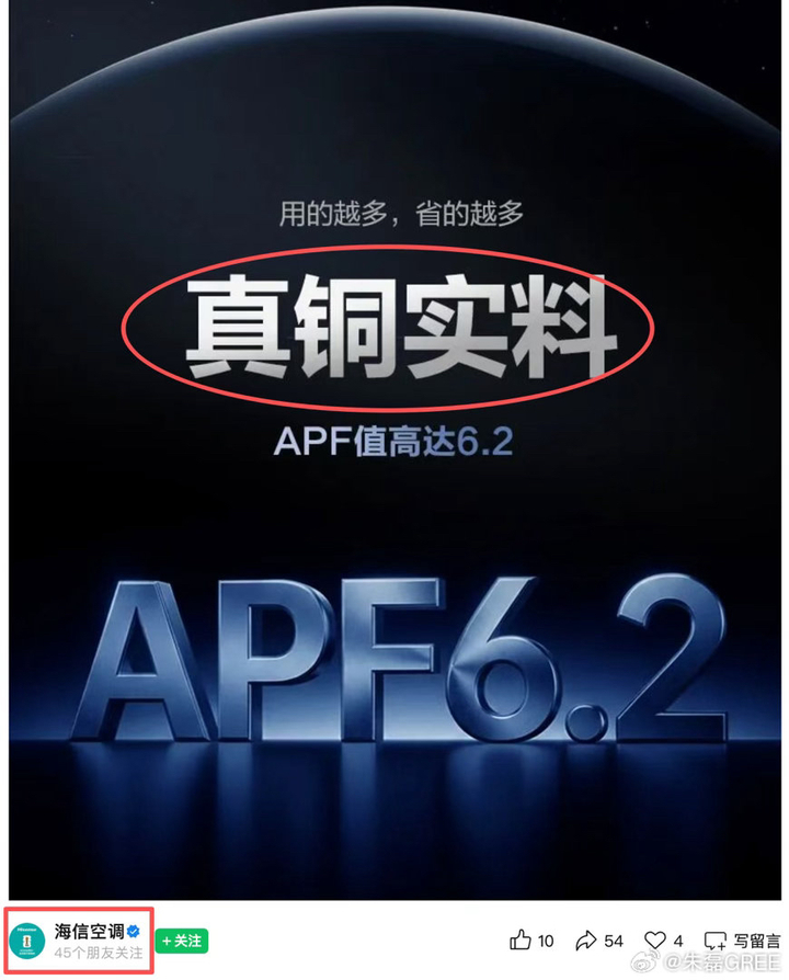 朱磊的指控极具针对性。他晒出海信宣传物料照片,画上红圈,并喊话海信“请先自查,你家哪些产品使用了铝线电机甚至铝管”。他还进一步披露格力已做“细致的市场调查”,暗示掌握海信部分产品使用铝材的证据。