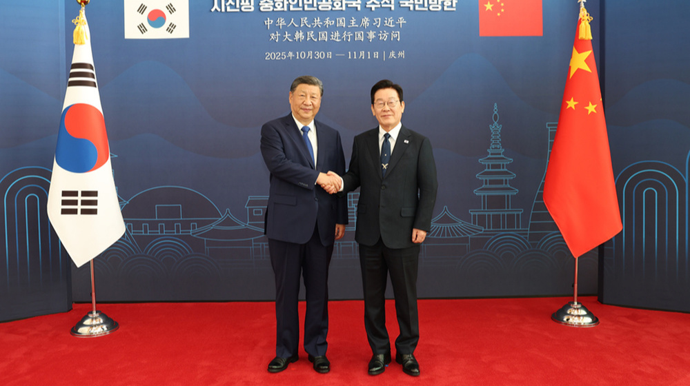 当地时间10月30日,国家主席习近平在釜山同美国总统特朗普举行会晤。