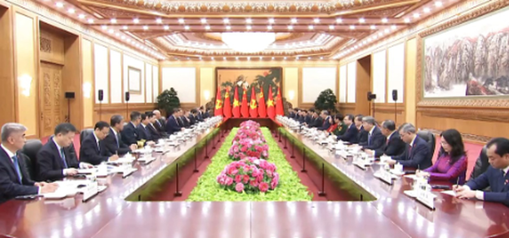 苏林表示,这是我当选越南国家主席后首次出访,也正值习近平总书记、国家主席去年对越进行历史性访问一周年,充分反映了总书记同志所说的“邻里越走越亲”。越方感谢中国共产党、政府和人民对越共十四大提供的重要政治支持,愿始终同中方赓续传统友谊,推动两国全面战略合作伙伴关系和具有战略意义的命运共同体不断发展。越方祝贺中国胜利完成“十四五”规划并取得历史性成就,相信中方将顺利实施“十五五”规划,不断推进高质量发展和社会主义现代化建设,如期实现第二个百年奋斗目标,并成为世界和平发展的支柱力量和首要动力。