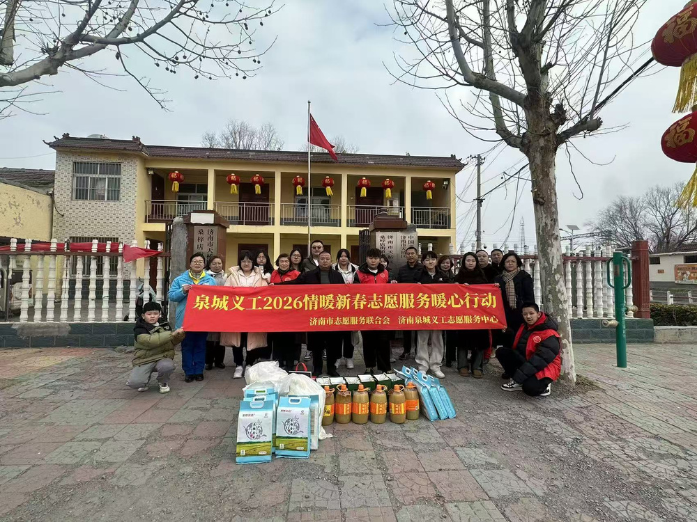 2026年2月10日,农历腊月二十三,北方“小年”,“泉城义工2026情暖新春志愿服务暖心行动”如期开展。泉城义工梓桥志愿服务队的20名志愿者在队长怀云义的带领下,带着爱心物资与新春祝福,来到天桥区桑梓店街道,走访慰问了仓上村、高王村、石门孙村的五户困难家庭,为他们送上节前温暖。济南市志愿服务联合会副秘书长、济南日报报业集团泉城义工部主任阮媛一同参加本次活动。