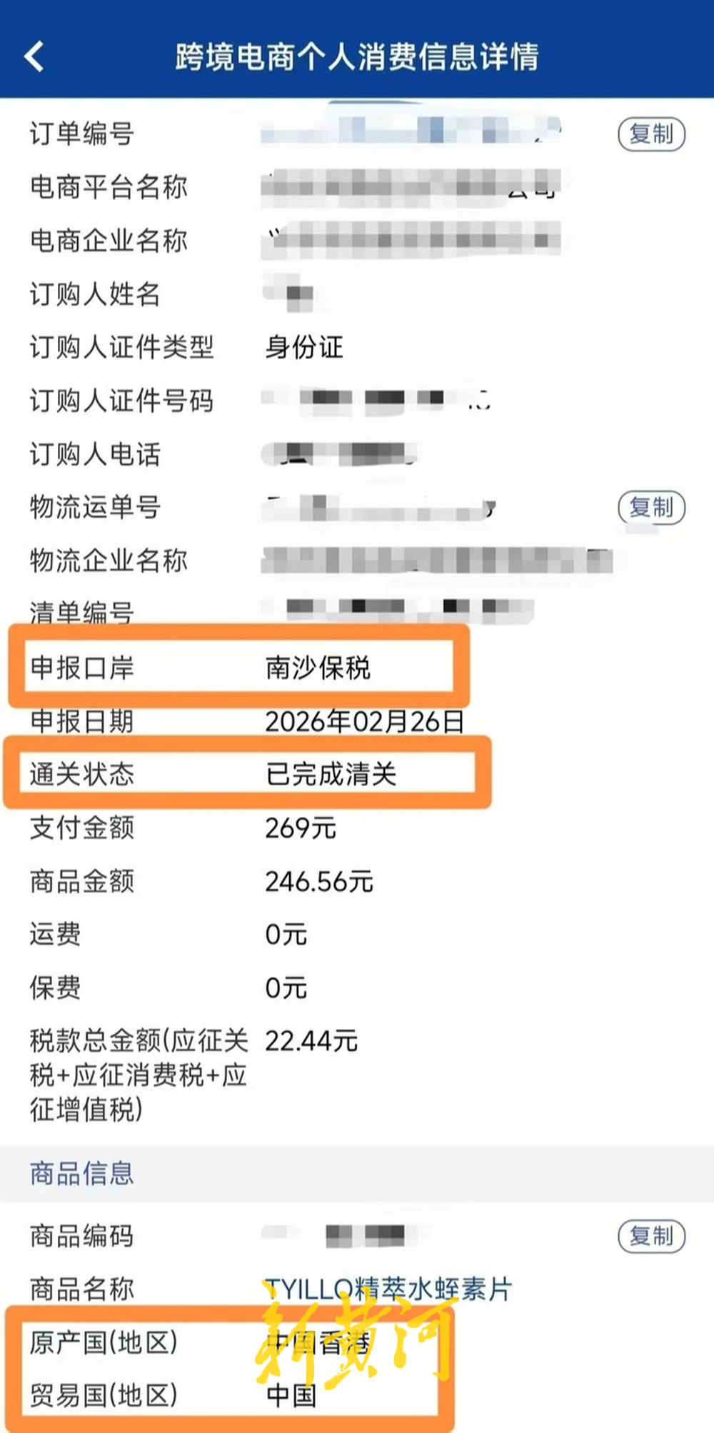 为了验证商品的正当性,邹先生扫描产品溯源码发现,生产厂家为玛柯莱芙制药营养保健有限公司,公开资料显示,这是一家位于中国香港的“私人股份有限公司”。此后他用“掌上海关”App查询这笔订单的跨境电商个人消费记录时,申报信息清清楚楚写着:原产地为“中国香港”,清关口岸为“广州南沙保税区”。
