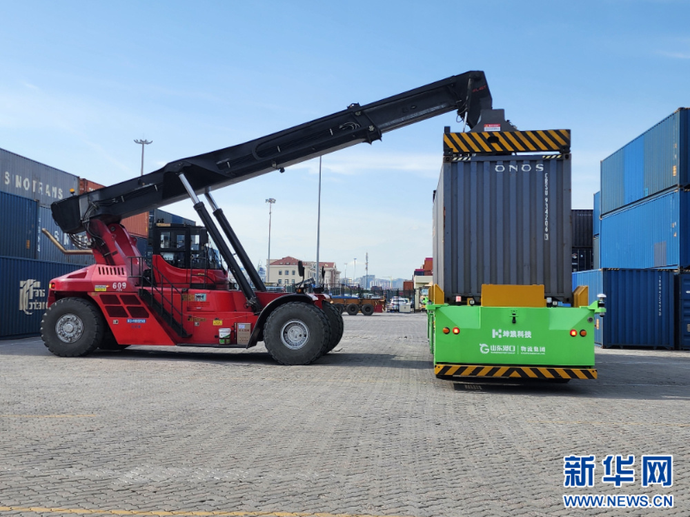 IGV智能导引运输车在装卸货物(资料图)。新华网发