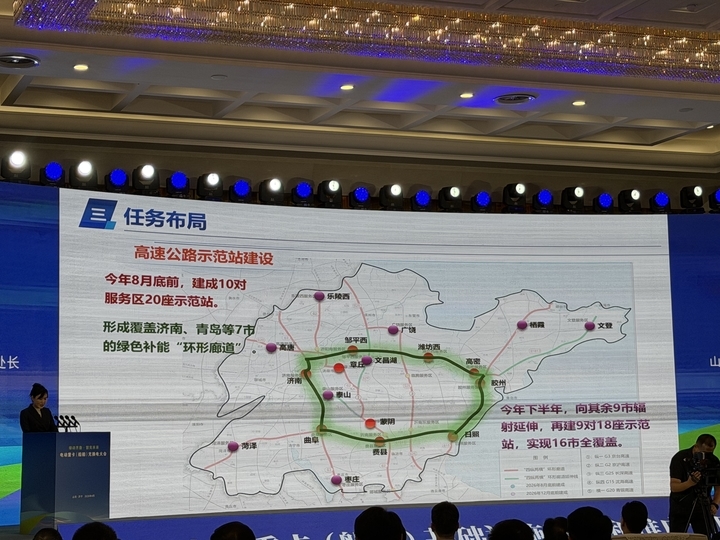 记者从现场公布的分步推进计划中了解到,2026年8月底前,高速将建成10对20座示范站,形成济南、青岛等7市“环形廊道”,国省道建成60座示范站;下半年高速向其余9市辐射,再建9对18座示范站,实现16市全覆盖,2027年上半年完成剩余示范站建设。
