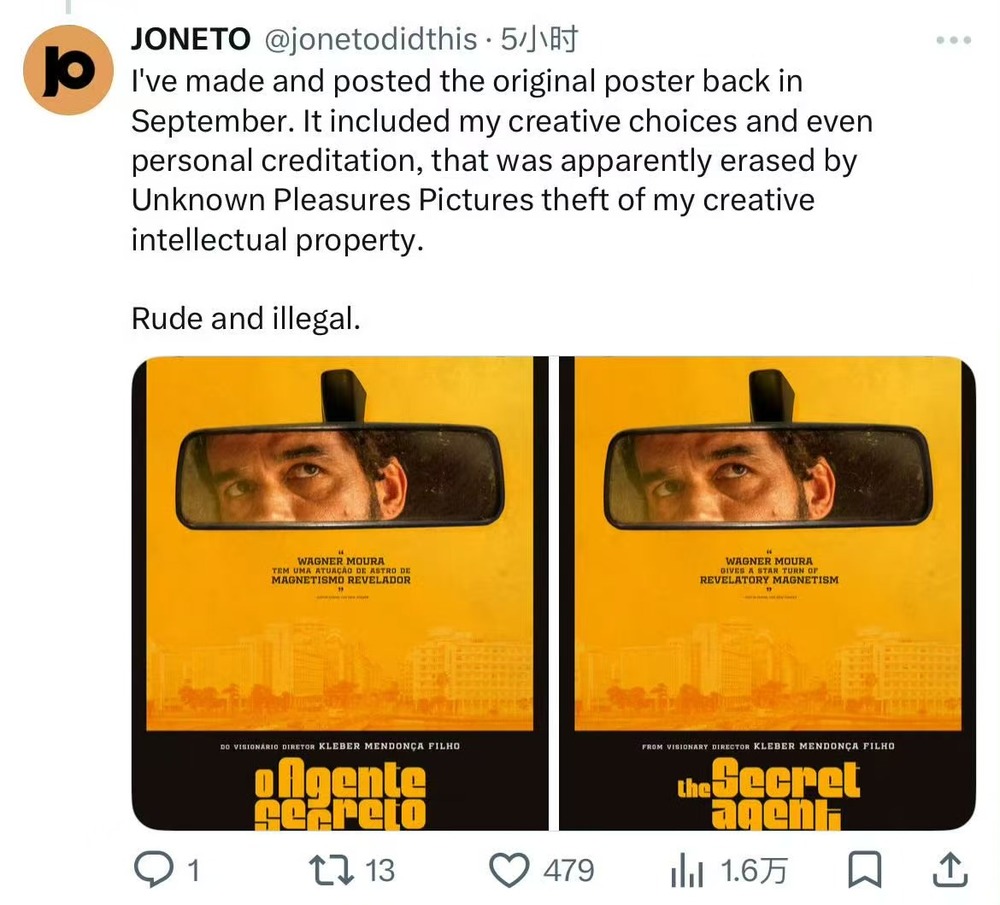 公开资料显示,电影《密探》是巴西导演小克莱伯·门多萨执导的政治惊悚片,以1977年巴西累西腓为背景,讲述学者马塞洛(瓦格纳·马拉饰)逃离了他混乱的过去,来到累西腓,希望在这里建立新的生活并与家人重修旧好。然而,他并未料到死亡威胁如影随形,笼罩在他的头顶。该片也是法国《电影手册》2025 年度十佳影片。
