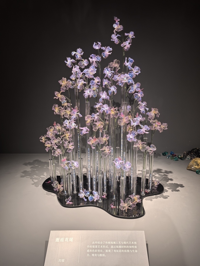 除“蝴蝶灵蛇花冠”外,本次刘媛还有《永恒》《烟火年年》《邂逅鸢尾》等7件作品参展。她表示,希望通过自己的努力,为传统琉璃技艺注入新鲜活力,让这项古老而美好的技艺得以新生与传承。
