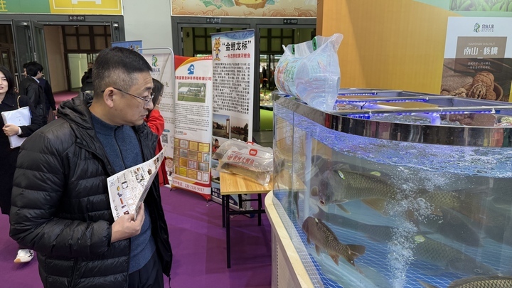 整个活动期间,“泉水人家”展区现场人气高涨,市民对优质农产品表现出强烈兴趣。记者在现场看到,多条大黄河鲤鱼在水箱中游弋,吸引了不少人围观拍照。“这些鱼养了3年多,比较大。”济南国家黄河鱼谷农业产业园负责人王光臣介绍道。占地1200余亩的济南国家黄河鱼谷农业产业园始建于2018年,地处黄河岸边,地理环境为生态养殖黄河鲤鱼提供了适宜条件,现在已经成为济南的特色品牌。“这么大的黄河鲤鱼第一次见,金鳞赤尾,挺震撼的,真让我领略了济南市农业发展的非凡成就。”一位市民向记者表示。