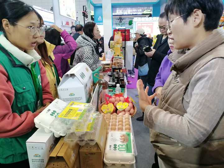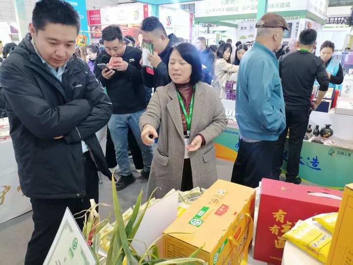 走进“泉水人家”展区,“好农品 泉水造”的品牌标识格外醒目,整体设计融入了泉水元素,清新雅致,与品牌内涵相得益彰。展台上,平阴玫瑰系列产品、莱芜万兴生姜系列产品、金御坊粮油、莱芜香肠、黄家烤肉、韩发记香油、秦朕葱酱、兴牛牛奶、金牌“子房洞”小米、高品质的无菌鸡蛋等特色农产品琳琅满目,散发着浓郁的乡土气息与现代农业的精致感,展现出了济南农业从种植到研发、再到生产的完整产业链条。