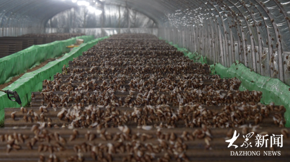 临近春节,走进日照市岚山区高兴镇的山东蜗牛天使农业发展有限公司的养殖基地,一掀开大棚门,暖湿的空气扑面而来。棚里恒温恒湿,地面上密密麻麻趴着白玉蜗牛,身子乳白,个头饱满。负责人尹永春站在温度计旁,不时抬头看一眼数据。为了让这些白玉蜗牛住得舒服,他在棚里配上了空气能设备,一年能孵化出3000万只蜗牛幼苗。