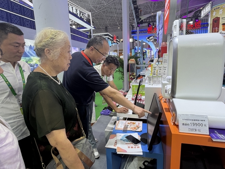 在黄元御展台,最吸引人的并非药材陈列,而是一套中医AI四诊系统。体验者站到设备前,短时间内就能得到体质分析结果,不少年轻观众排队体验。另一侧,中药饮用方式也在调整,通过高温高压快萃,几分钟内就能做出一杯草本饮品,流程更接近日常饮品消费。