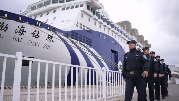 渤海湾航线平时有十几艘客滚船运行,每艘船都配有乘警,除了日常巡逻,还要开展消防演练、反恐培训、身份核查等工作,一到春运、节假日,更是忙得脚不沾地。海上工作环境特殊,潮湿、颠簸、噪音大,还经常没有手机信号,连续多日在船上执勤是家常便饭,有时候靠了岸,脚踩在地上还觉得在摇晃。